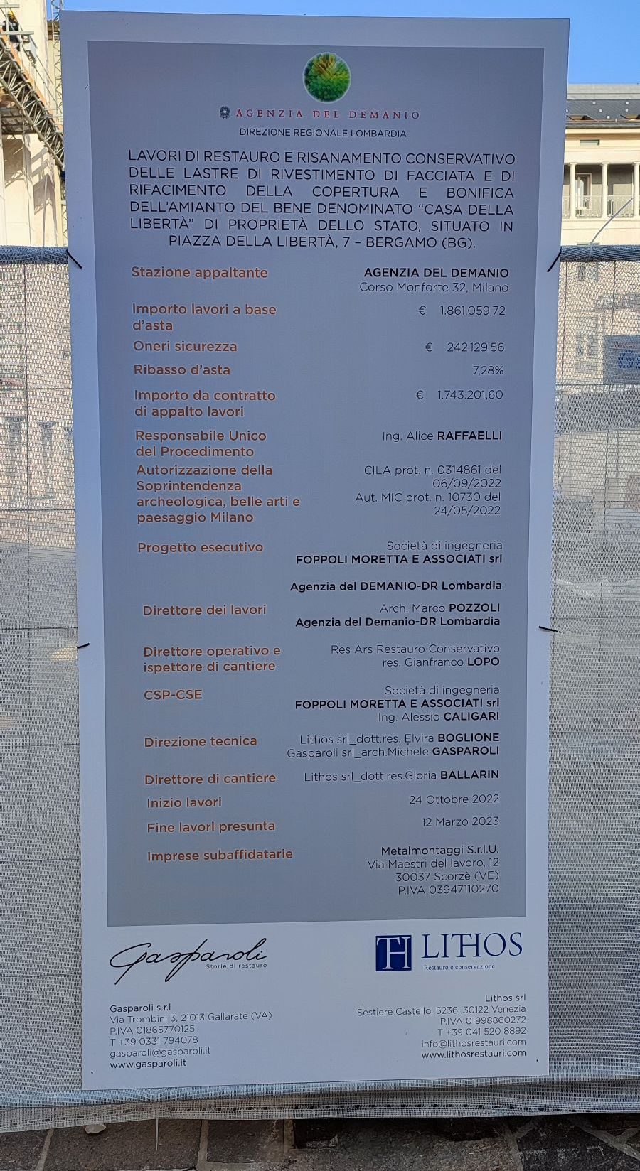A giugno 2023 sono stati conclusi i lavori di restauro conservativo nella Casa della Libertà a Bergamo. L’intervento conservativo ha avuto un buon esito ed è stato realizzato in tempi record da due tra le migliori imprese specializzate del settore. La città di Bergamo si riappropria di un’importante spazio di aggregazione in grado di ospitare eventi culturali di ogni genere.